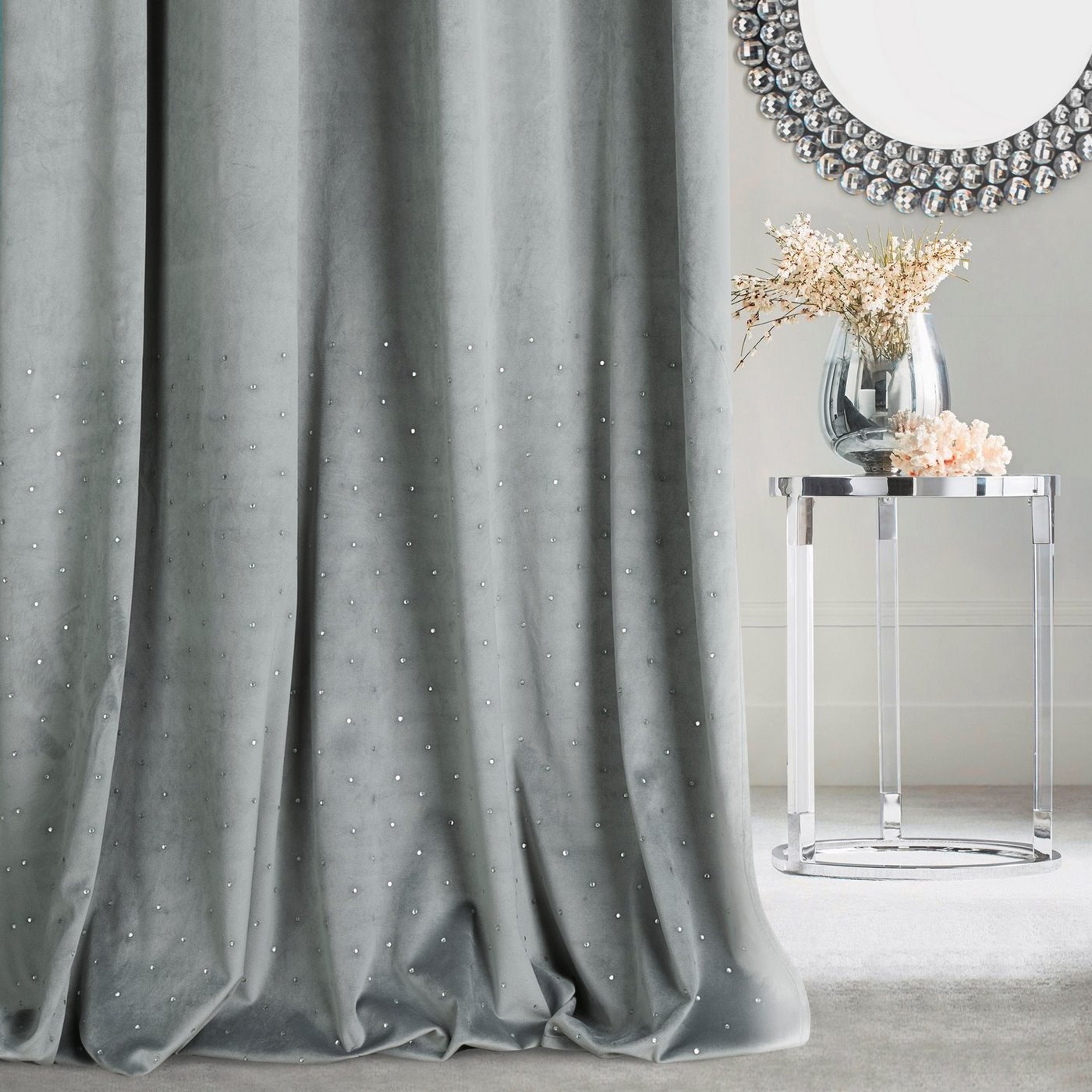 – W sypialni możemy sobie pozwolić na ciężkie, ciemne zasłony wykonane na przykład z welwetu – mówi dekorator ze sklepu Eurofirany z CH Fasty. – Mogą być jednolite, zdobione kryształkami, cekinami, a nawet piórami. Jeśli chodzi o kolory, to w stylu glamour dobrze wyglądają połyskujące szarości, granaty, butelkowe zielenie, a nawet pudrowy róż.